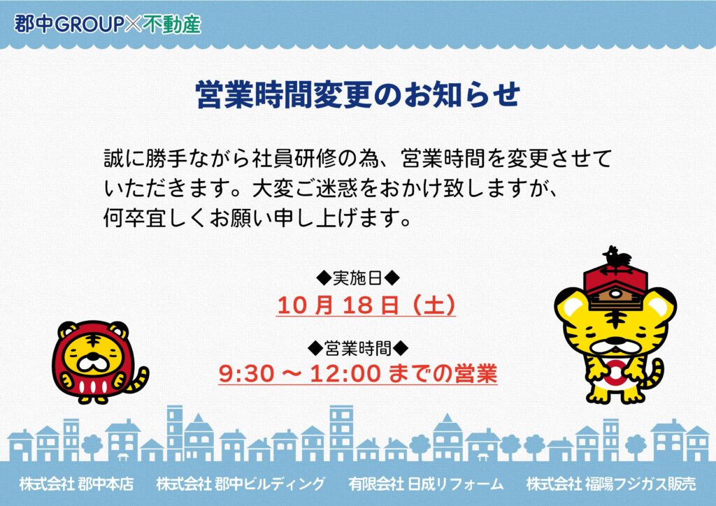 誠に勝手ながら社員研修の為、営業時間を変更させていただきます。