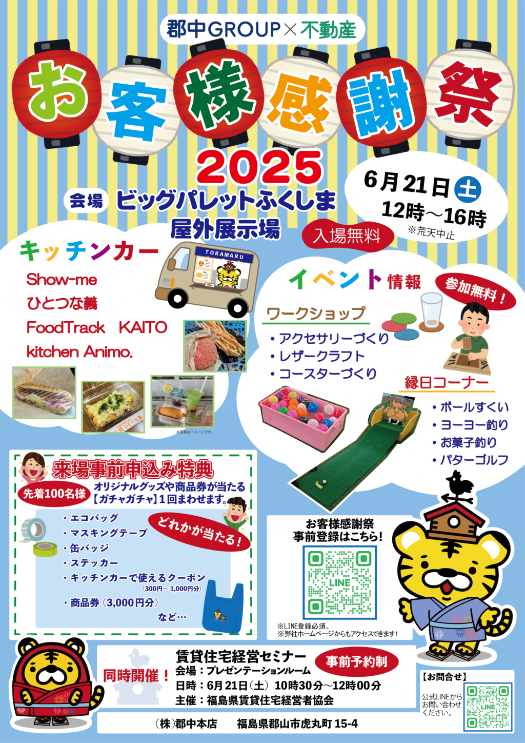 郡中GROUPお客様感謝祭の入場には、電子チケットが必要となります。電子チケットの入手方法につきましては、下記の該当項目よりアンケート回答後、自動返信メール内にチケット入手のURLを発行させていただきますので、お気軽にご応募ください。